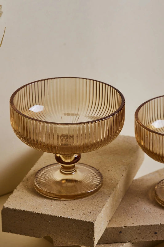 Set of 2 Footed Ice Cream Sugar Bowl Snack Bowl 310 ml Amber